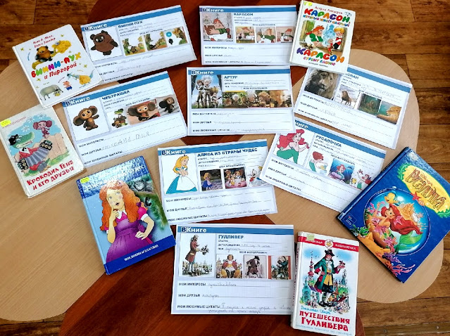 Школьники 1-5 классов продолжают принимать участие в акции ФЛЕШБУК - создание странички для социальной сети "ВКниге". Для этого наши читатели выбирают образец странички любимого персонажа, заполняют его личные данные, выбирают статус, и даже приклеивают фотографии героя. Подсказки ребята могут найти в предложенных книгах. Бумажные версии социальных страничек уже появились у Алисы в стране Чудес, Гулливера, Винни-Пуха, Карлсона, Аслана, Русалочки, Чебурашки, Артура!